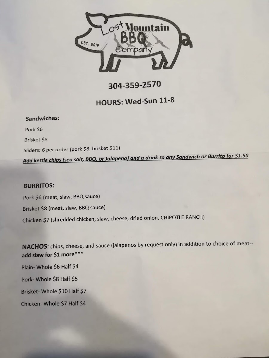 Introducing Lost Mountain BBQ Company, a hidden gem nestled in the heart of Romney, WV. This barbecue spot promises a flavorful journey with every bite, celebrating the rich, smoky traditions of American barbecue.